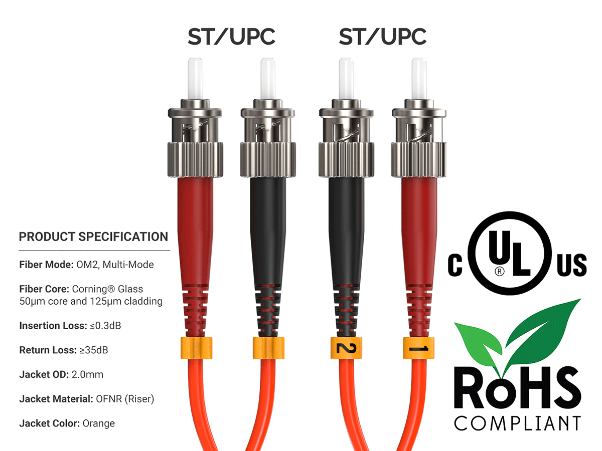 - Durable ST connectors for seamless integration with network equipment.